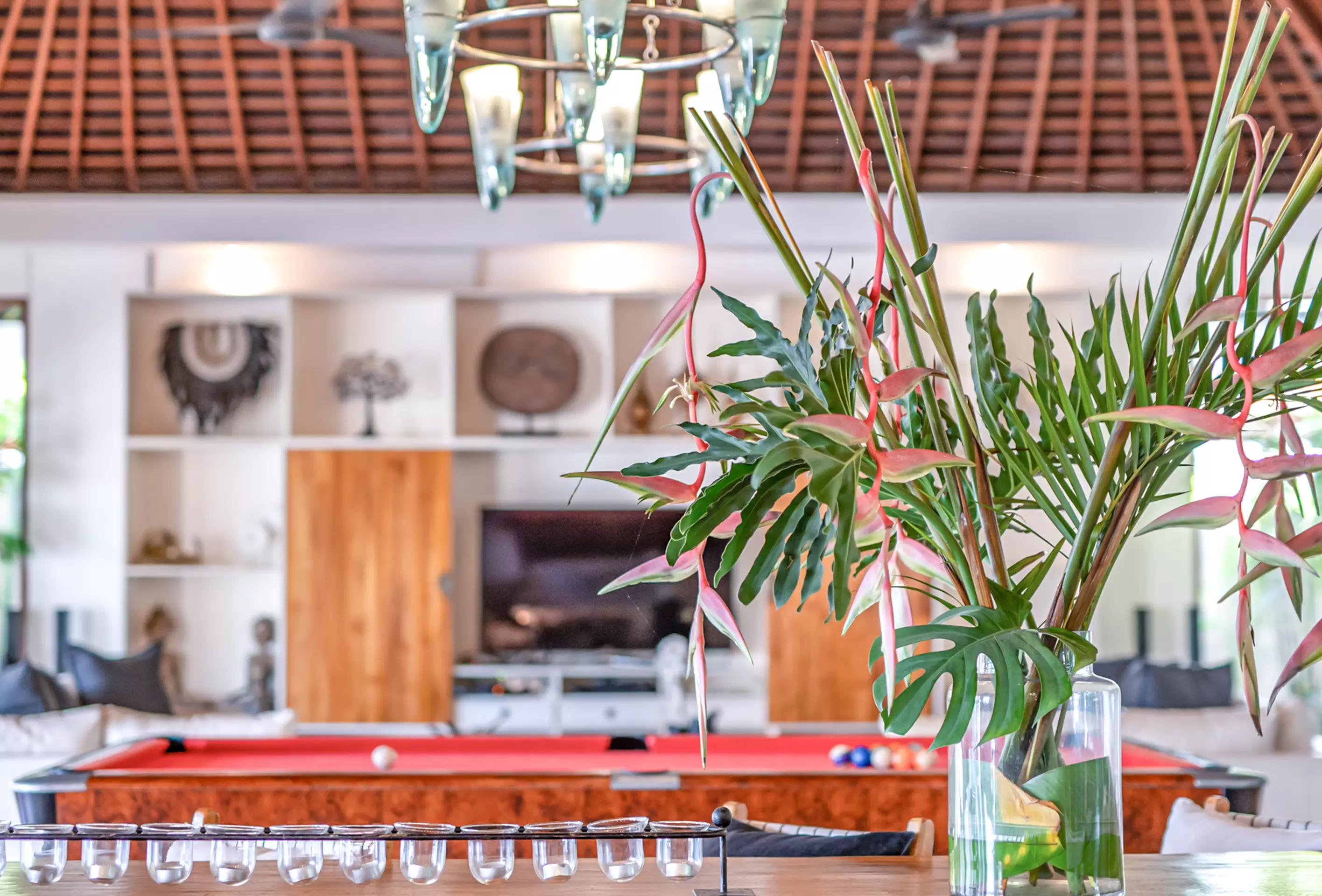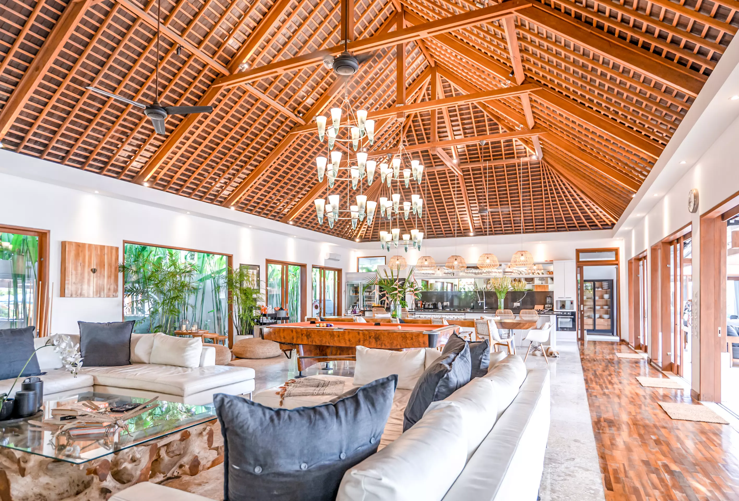 Discover the spacious indoor and outdoor living areas at Villa Mimpi Nyata, designed for breezy open‑plan comfort and effortless tropical relaxation. Featuring a large 10+ seated dining area, pool table, table tennis, and a Smart TV for playful, relaxed movie nights.